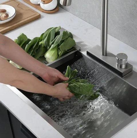 Dodatkowo bateria posiada wbudowany strumień wody typu wodospad, co większa funkcjonalność baterii i pozwala na wygodne mycie warzyw i owoców oraz przepłukiwanie naczyń.