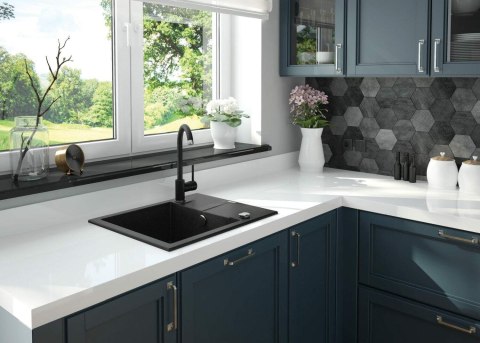 Bateria kuchenna z kolekcji Nemezja jest nowoczesna i bardzo stylowa. Grafitowy kolor nadaje kuchni elegancji i szyku, a jednocześnie jest uniwersalna i pasuje do każdej kolorystyki i aranżacji. Idealnie sprawdzi się do granitowego zlewu. Dołożyliśmy wszelkich starań, aby stworzyć produkt najwyższej jakości. Bateria kuchenna łatwo się czyści i pracuje naprawdę bardzo płynnie. Dedykowana jest osobom lubiącym porządek z uwagi na umiejscowienie dźwigni mieszacza po swojej prawej stronie, gdzie krople spadające z mokrych rąk omijają wylewkę. Wysoka bateria ułatwia prace kuchenne. Pozwala na łatwe napełnienie wodą nawet bardzo wysokiego garnka.