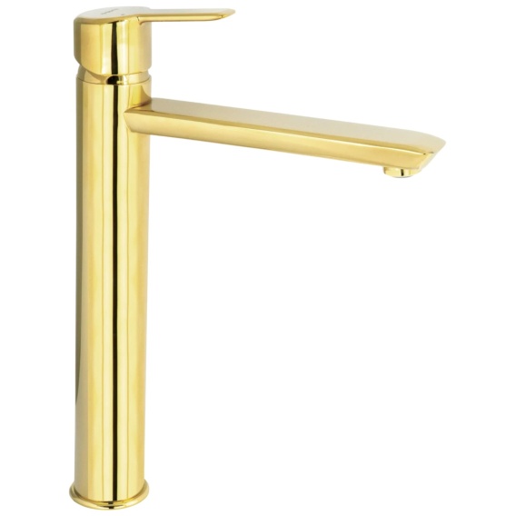 Nowoczesna bateria umywalkowa z kolekcji Arnika charakteryzuje się podwyższonym korpusem i zachwyca błyszczącym, złotym wykończeniem. Przeznaczona jest do umywalek nablatowych. Jej zaokrąglone linie i harmonijna forma dodają klasy każdej łazience. Bateria posiada silikonowy aerator z funkcją anti-calc, przez co jest łatwa w czyszczeniu i skutecznie ogranicza zużycie wody.