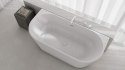 Bateria wannowa 4-otworowa Silia oparta jest na kształcie wygiętej w łuki rury, przez co produkty są opływowe i zaokrąglone. Wykonana została z wysokogatunkowego mosiądzu i wykończona w białym, matowym kolorze. Bateria wyposażona jest w ruchomy, silikonowy aerator. Słuchawka posiada system anti-calc dzięki czemu utrzymanie produktu w czystości nie stanowi większego problemu. Mechaniczny, ceramiczny przełącznik funkcji typu Clik pozwala na łatwą zmianę źródła wody w każdej sytuacji.