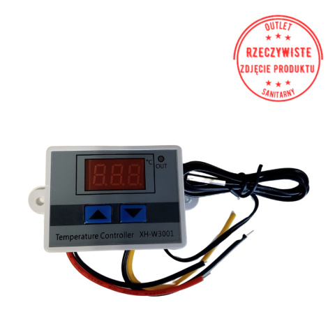 XH-W3001 to elektroniczny sterownik temperatury zasilany napięciem 230V. Moduł zamknięty w obudowie z wyświetlaczem oraz dwoma przyciskami służącymi do obsługi menu oraz regulacji ustawień temperatury. Sterownik w zestawie posiada wodoodporną sondę temperatury pozwalającą na sprawdzanie temperatury również płynów. Urządzenie może pracować w trybie chłodzenia lub grzania, dzięki czemu przykładowo możemy podgrzewać ciecz, gdy temperatura spadnie poniżej ustalonego pułapu lub wentylować pomieszczenie, gdy temperatura przekroczy ustawioną normę.