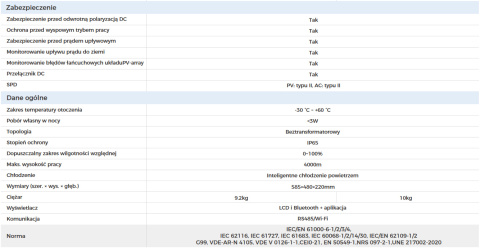 - aż do 4 MPPT z mozliwością przeciążenia DC (do 150%)