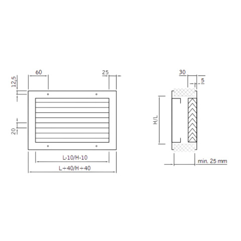 Kratki wentylacyjne znalazły swoje zastosowanie jako element ogólnego systemu wentylacji w celu zapewnienia przepływu pomiędzy pomieszczeniami poprzez przegrody budowlanew środowisku nieagresywnym o wilgotności względnej do 70%. Montuje się je w ścianach wewnętrznych lub drzwiach. Ramka czołowa oraz kierownice wykonane z walcowanych profili stalowych. Osadzenie kierownic stałe, w sposób zasłaniający widoczność. Została wykonana z blachy ocynkowanej odpornej na korozję, a także zabezpieczona powłoką lakierniczą proszkową białą RAL 9003.
