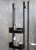 Półka na kabinę typu C z dwiema ażurowymi półkami i dwoma haczykami na ręczniki, pochodząca z wyróżnionej nagrodami kolekcji Mokko, to nowoczesne, minimalistyczne, a co za tym idzie proste i funkcjonalne akcesorium, które doskonale odnajdzie się w przestrzeniach współczesnych łazienek i salonów kąpielowych. Wykonaną z 2,5 mm stali półkę wiesza się na szybach stałych kabiny i kabinach typu walk-in, półkami na akcesoria do wewnątrz. Poza bezpiecznym, szybkim montażem, akcesorium to charakteryzuje się minimalistycznym designem, ergonomią, wysoką jakością wykonania, starannym wykończeniem i pięknym odcieniem głębokiej czerni. Satynowoczarne akcesoria z linii Nero wyjątkowo efektownie harmonizują z czarną armaturą, gładkimi kaflami łazienkowymi, drewnianymi czy kamiennymi blatami. Dodatki te świetnie odnajdą się w pomieszczeniach urządzonych w stylu industrialnym, skandynawskim czy minimalistycznym. Kolekcja akcesoriów łazienkowych Mokko autorstwa Kasi Łogwinienko i Michała Łoja została doceniona za jej wzornictwo, technologię wykonania, innowacyjność oraz funkcjonalność i otrzymała nagrodę Diament Meblarstwa 2020, oraz została Finalistą konkursu Dobry Wzór 2020.