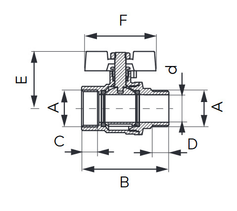 Zawór kulowy DN20 3/4'' PN16 z motylkiem