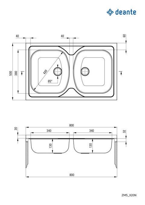 Zlewozmywak stalowy 2-komorowy - nakładany
